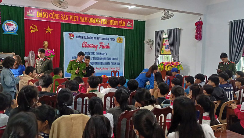 Huyện đoàn Quảng Trạch phối hợp với lực lượng Công an huyện tuyên truyền cài đặt, kích hoạt tài khoản định danh điện tử trên ứng dụng VNeID.