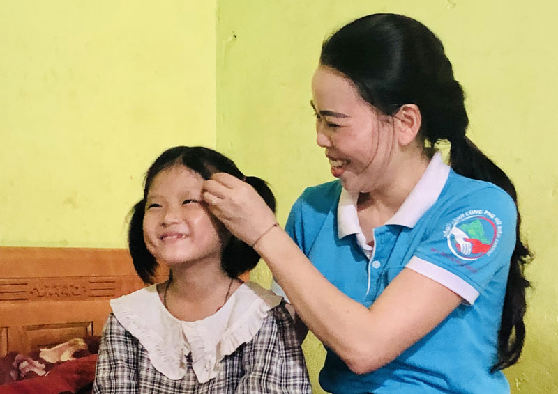 Đã có lúc muốn buông, rơi nước mắt vì mọi sự cố gắng không được em đón nhận, nhưng tôi vẫn kiên trì. Mỗi ngày, tôi dành từ 30 phút đến một giờ đồng hồ đến nhà hỗ trợ cha con Linh, cùng làm vườn, dọn dẹp nhà cửa, hướng dẫn em cách sắp xếp quần áo, đồ dùng học tập sao cho ngăn nắp, chải tóc, buộc tóc sao cho gọn gàng. Chúng tôi cũng đã liên hệ với cô giáo, nhờ cô hỗ trợ thêm để Linh nắm bắt được các âm, chữ, các kiến thức cơ bản để em học tốt hơn. Hai cha con cũng dần cởi mở, phối hợp để tôi và chị em Hội LHPN xã hỗ trợ Linh trong học tập và chăm lo em trong cuộc sống".
