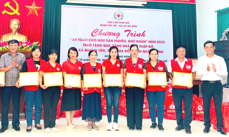 Cùng với việc giúp đỡ cho gia đình anh Đoàn Chí Linh, Hội CTĐ TX. Ba Đồn cũng đã phối hợp với Hội CTĐ quận Tây Hồ trao tặng 100 suất quà cho gia đình các ngư dân nghèo, hộ gia đình khó khăn tại xã Quảng Tiên, mỗi suất trị giá 1 triệu đồng.