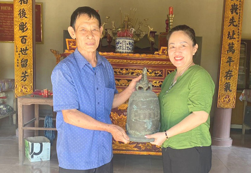 Chuông được đúc năm 1856, cao 75cm, đường kính 55cm, nặng 7,56kg, có giá trị lớn về lịch sử, văn hóa và nghệ thuật. “So với việc được đặt trong nhà thờ dòng họ, việc chiếc chuông được trưng bày ở Bảo tàng Tổng hợp tỉnh sẽ góp phần nâng tầm giá trị của nó, bởi ở đó, chiếc chuông được nhiều người biết đến, chiêm ngưỡng, được các cơ quan chức năng bảo quản, giữ gìn đúng cách”, ông Bảnh chia sẻ về lý do hiến tặng chiếc chuông quý cho bảo tàng.