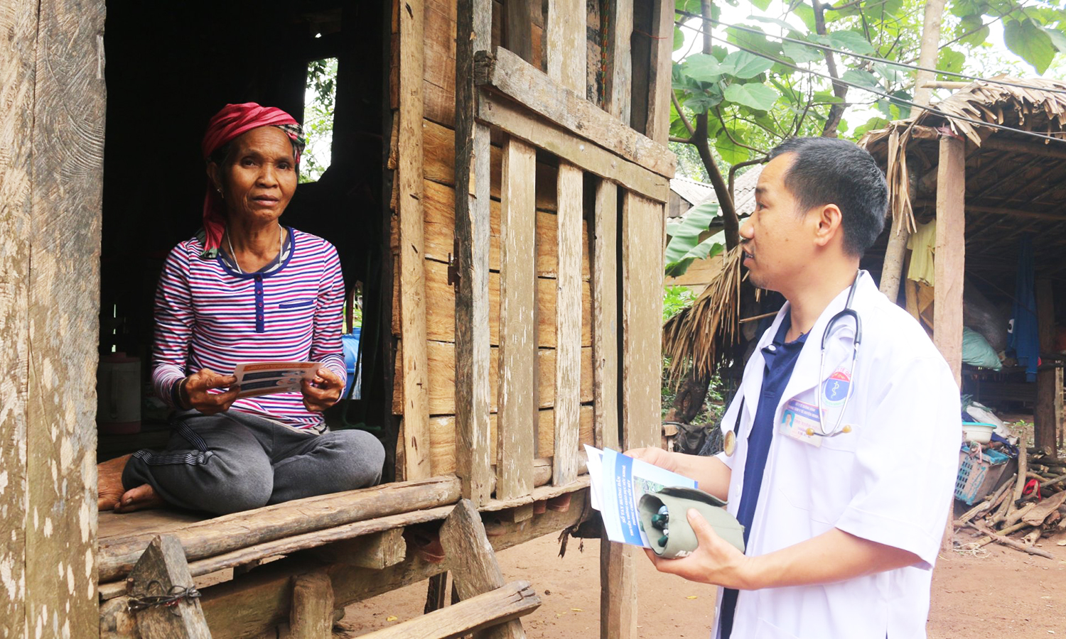 Bác sĩ Cao Xuân Tiêm tuyên truyền các biện pháp phòng, chống dịch bệnh cho bà con dân bản.