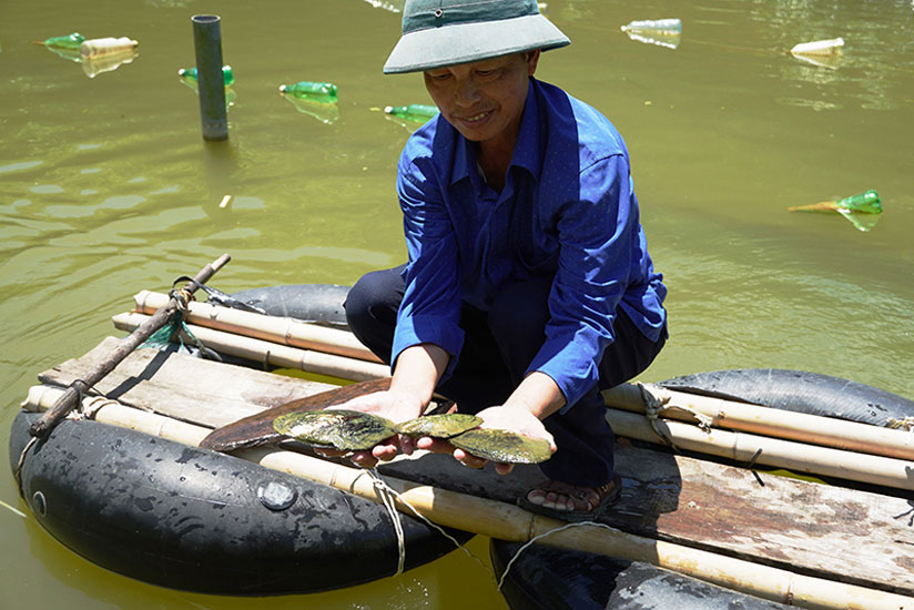 Ban đầu, do chưa có kinh nghiệm nên trong quá trình chăm sóc, một số con trai nuôi bị chết do hà, bùn đất bám dày vỏ. Cán bộ kỹ thuật đã hướng dẫn gia đình kịp thời xử lý môi trường, vệ sinh vỏ trai, hệ thống lưới treo tránh ảnh hưởng đến sự sinh trưởng và phát triển vật nuôi, thời tiết mát mẻ đã tiến hành bổ sung dinh dưỡng khoáng, vôi bột vào nước cân bằng các yếu tố môi trường cho trai phát triển ổn định; một số con có dấu hiệu nhiễm nấm đã xử lý bằng pha nước muối sinh lý, ngâm 1-2 giây sau đó phơi khô khoảng 15 phút rồi thả trở lại vào ao.