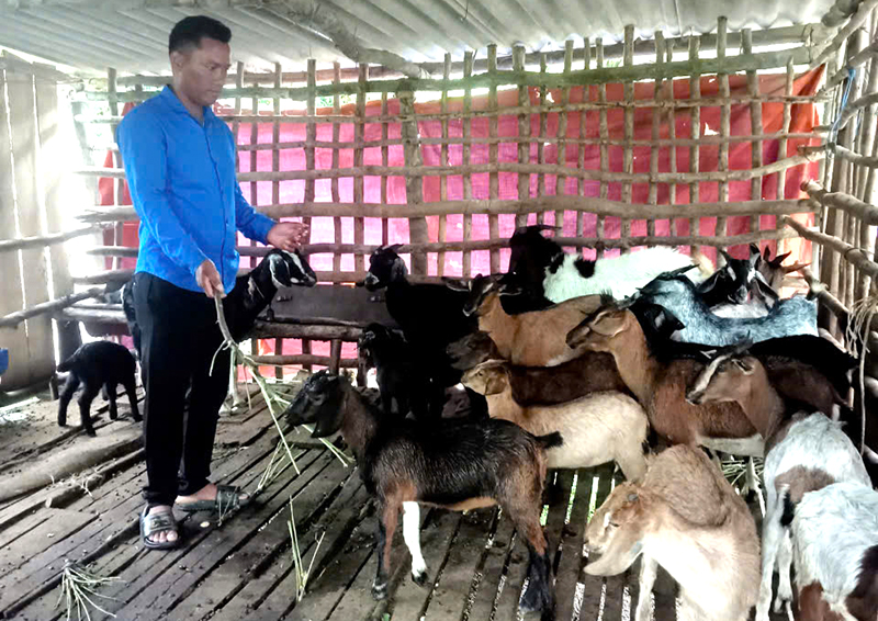 Anh Hồ Văn Mên vừa tích cực vận động bà con tham gia phát triển kinh tế, vừa chủ động phát triển các mô hình trồng trọt, chăn nuôi của gia đình.
