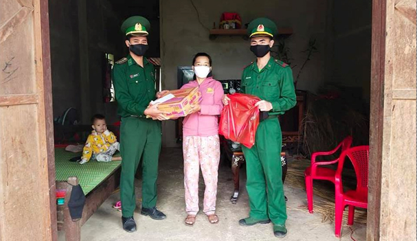 Tuổi trẻ Biên phòng Quảng Bình trao tặng quà hỗ trợ các gia đình có hoàn cảnh khó khăn trong đại dịch Covid-19.