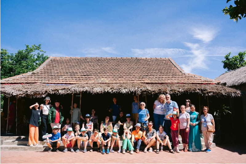 Du khách đến tham quan và tìm hiểu nét đẹp văn hóa bản địa của bà con dân tộc Bru-Vân Kiều ở bản Còi Đá, xã Ngân Thủy