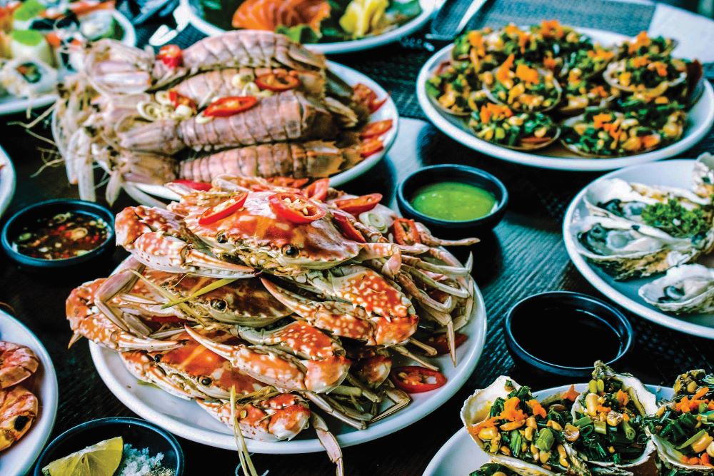 Sau khi thưởng ngoạn cảnh quan, du khách ghé vào những quán ăn nằm bên biển Nhật Lệ, Bảo Ninh... để cảm nhận và thưởng thức ẩm thực hấp dẫn, đặc biệt là hải sản. Khi đến đây, bạn sẽ được nhâm nhi đủ các loại hải sản như: Cá, ghẹ, tôm, mực, ngao, ốc… dù chế biến theo cách nào thì vẫn giữ được nguyên mùi vị đặc thù. Trong không gian của biển trời mênh mông và gió trời lồng lộng, du khách vừa thưởng thức món ăn dân dã vừa ngắm cảnh hoàng hôn từ từ buông xuống. Một cảm giác thật tuyệt vời!