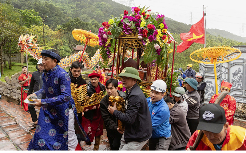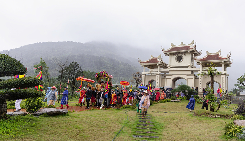 Rước sắc phong Thần vị và xiêm y Thánh Mẫu từ đình làng Vịnh Sơn lên Đền Thánh Mẫu Liễu Hạnh.
