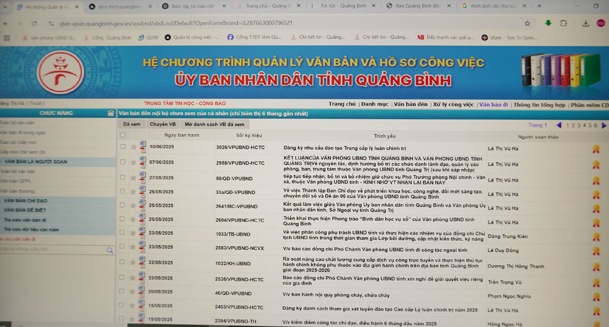 (Quang Binh Portal) - Ngày 11/6/2025, UBND tỉnh ban hành Công văn số 1282/UBND-NCVX về việc tiếp tục tăng cường công tác quản lý văn thư, lưu trữ và triển khai số hóa tài liệu trong quá trình sắp xếp tổ chức bộ máy hành chính.