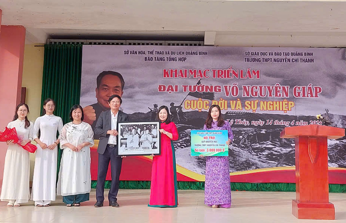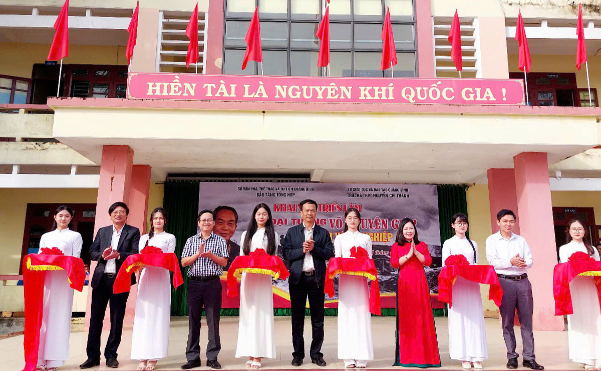 (Quang Binh Portal) - Sáng ngày 14/4/2025, tại Trường THPT Nguyễn Chí Thanh (huyện Lệ Thủy), Bảo tàng Tổng hợp tỉnh tổ chức khai mạc triển lãm chuyên đề “Đại tướng Võ Nguyên Giáp - Cuộc đời và sự nghiệp”. Triển lãm là hoạt động ý nghĩa, thiết thực chào mừng kỷ niệm 50 năm Ngày Giải phóng miền Nam, thống nhất đất nước (30/4/1975 - 30/4/2025), hướng tới kỷ niệm 114 năm Ngày sinh của Đại tướng Võ Nguyên Giáp (25/8/1911 - 25/8/2025).
