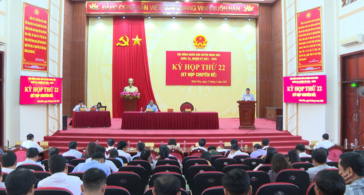 (Quang Binh Portal) - Sáng ngày 23/4/2025, HĐND huyện Minh Hóa khóa XX, nhiệm kỳ 2021 - 2026 tổ chức kỳ họp thứ 22 (kỳ họp chuyên đề) nhằm xem xét, thảo luận và thông qua Nghị quyết về chủ trương sắp xếp đơn vị hành chính cấp tỉnh, cấp xã.