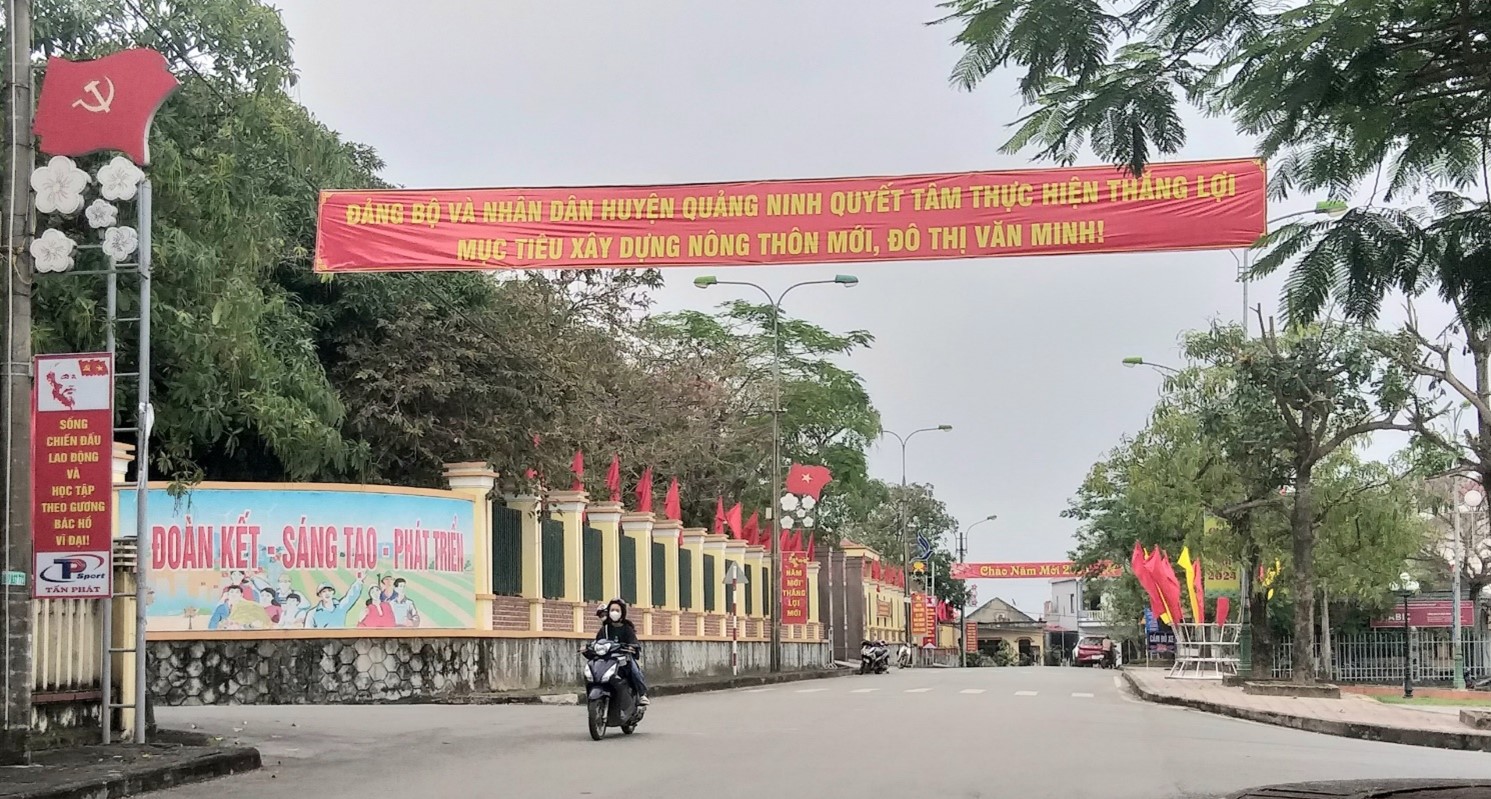 Thực hiện Chương trình mục tiêu Quốc gia xây dựng nông thôn mới, Quảng Ninh đã đạt nhiều kết quả nổi bật. Đến nay, toàn huyện đạt 251 tiêu chí, bình quân mỗi xã đạt 17,9 tiêu chí, tăng 19 tiêu chí so với giai đoạn đầu. Về xây dựng nông thôn mới nâng cao, huyện đạt 189 tiêu chí, trung bình 13,5 tiêu chí/xã. Có 03 xã được công nhận đạt chuẩn nông thôn mới nâng cao, 24 khu dân cư kiểu mẫu, 05 vườn mẫu và 03 thôn đạt chuẩn nông thôn mới tại xã đặc biệt khó khăn.